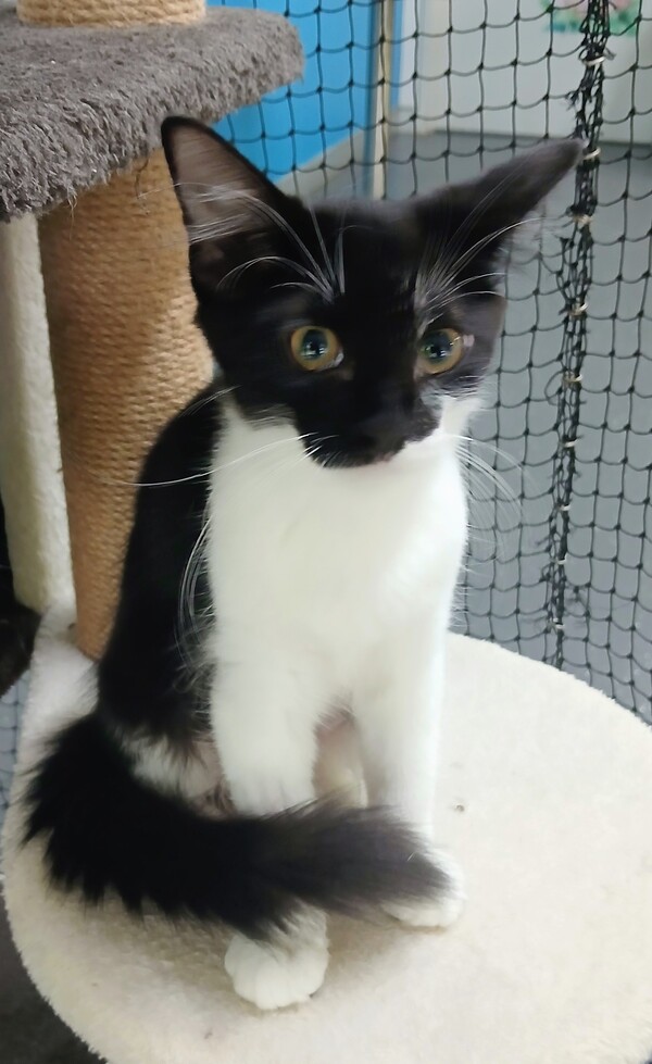 I was born in care, covered in oil since my mother was found in an oil can. My littermates and I ingested oil while she was pregnant so could have died without care from vets and the staff at the RSPCA. I spent over 3 months in foster care, growing up with my two brothers so I am very confident and can stand up for myself in rough and tumble play, but since they were adopted at the start of the month I have become a very smoochy kitten. I love people and cuddles. I also enjoy playing with balls and puzzles and I am quite inquisitive wanting to explore and having fun climbing on cat towers. I have now had my vetwork done and I am ready to have my forever home. Will you be my new family?