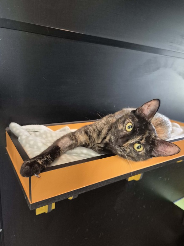 Peanut is a striking black tortoiseshell whose personality shines as brightly as her coat. She is affectionate and friendly, always ready to share her love, yet she carries an independent streak that makes her wonderfully easy-going. Peanut has a quirky fondness for roast chicken, which never fails to bring out her playful side and adds to her charm.