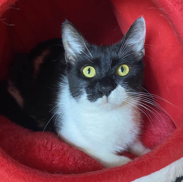 Sweetheart is a shy and gentle young girl with the softest soul. She can be shy and reserved at first but once she feels safe she blossoms into a super affectionate companion who loves quiet company and gentle affection. She has a serious love for puree treats and her heart will be won over with them in no time :) If you've got a calm, quiet home to help this girl feel safe, apply today to start your adoption journey.