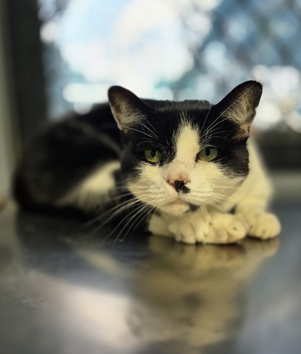 Oreo is a mature man with a striking coat that matches his name-black and white and full of charm. This big boy is a gentle soul who thrives on companionship and loves being part of the action.