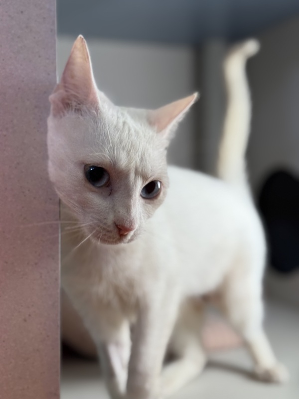 Jill is a sweet girl with a gentle nature who just needs a little extra understanding to help her feel safe. She can be timid at first, so she'll do best starting out in a quiet launch room with plenty of cozy hiding spots where she can retreat and observe her new surroundings. With a calm environment and a patient owner who understands cat behaviour, Jill will slowly begin to relax and gain confidence. Once she feels secure, her true personality starts to shine - soft purrs, curious glances, and affectionate moments that show how much love she has to give. Jill has all the potential to become a devoted, loving companion in the right home, where she can grow and thrive at her own pace.
