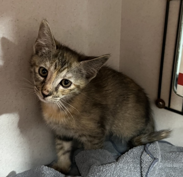 Maggie is a beautiful little kitten with a shy and timid nature. She may take a little time to feel comfortable in her new surroundings, but with patience and love, Maggie will blossom into the sweetest companion. Once she learns to trust, you'll see her affectionate side shine through, and she'll reward you with gentle purrs and quiet cuddles.