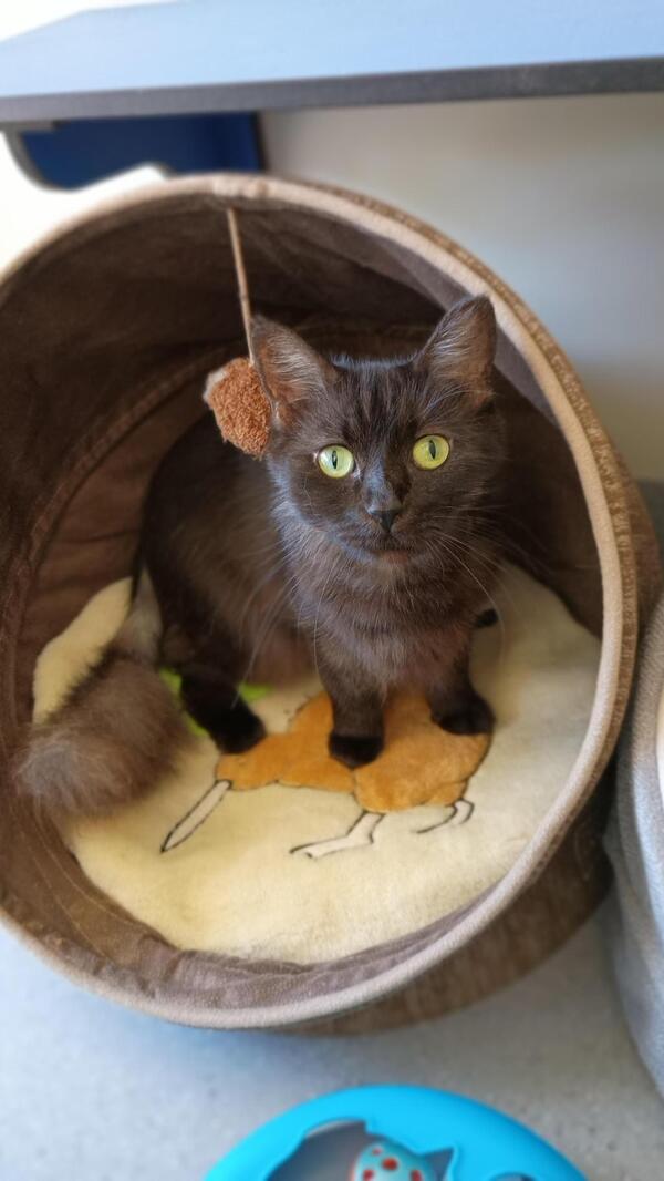 Hi! I'm Malibu. I love snuggling up in cozy corners and meeting new friends, though I might be a bit shy at first. Once I warm up, I'm the sweetest companion, always ready to offer a friendly purr. I enjoy peaceful days and gentle play. If you're looking for a loyal friend to share quiet moments and warm laps, I'm your perfect match. Let's make wonderful memories together!