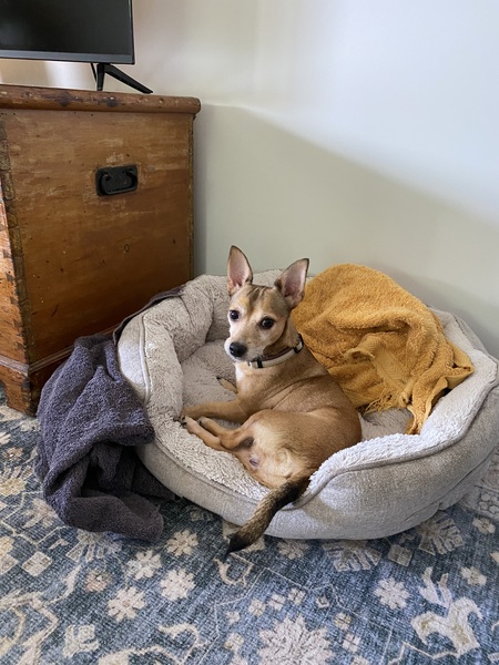 Hi my name is Bindi, I am a sweet soul looking for my forever home. I love lounging around on the couch and going for a nice stroll through the neighborhood. I am okay with other dogs so wouldn't mind sharing my new home.