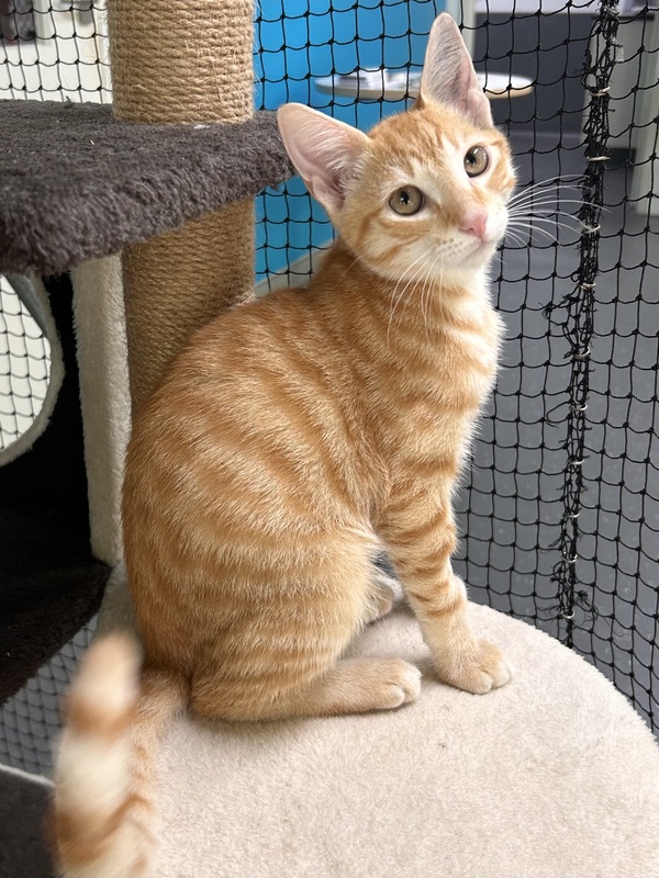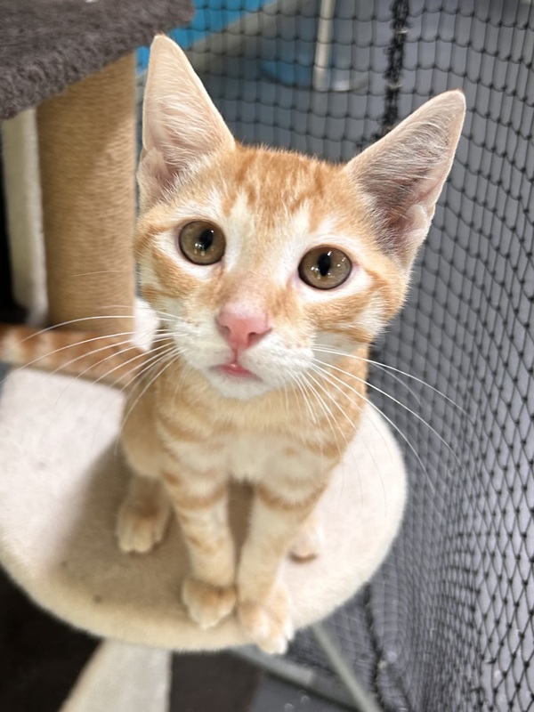 I'm a very sweet little guy; I love all the attention I can get and in return I'll give you the biggest purrs ever!! I love playing with my kitten friends here at the shelter, so I would love to go to a home with another playful cat! I'm known for my goofy antics, I'll definitely keep you entertained! But after all that play, I'm the biggest cuddle big around, I would love to curl up on the couch with you, and snuggle in bed at night! If you're looking for a cuddly companion who will bring joy and laughter to your home, I'm your guy! Come meet me today!