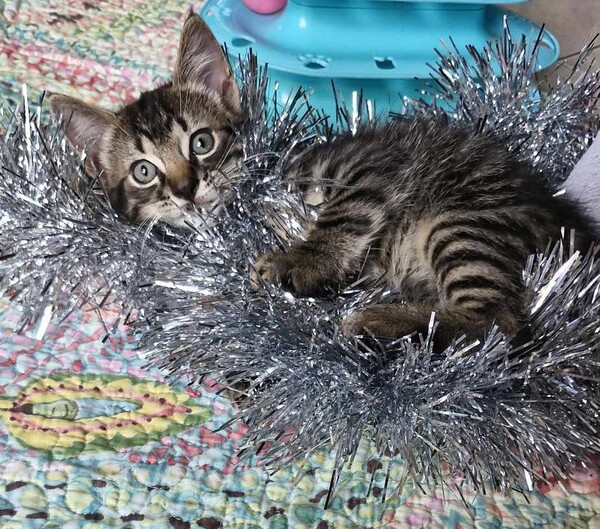 I have gorgeous tabby stripes and bright eyes that sparkle with curiosity. I love chasing toys, climbing, and playing hide-and-seek. But don't worry-I'm not all energy! When playtime is over, I'll happily curl up in your arms and purr like a tiny rocket engine.