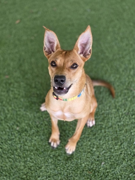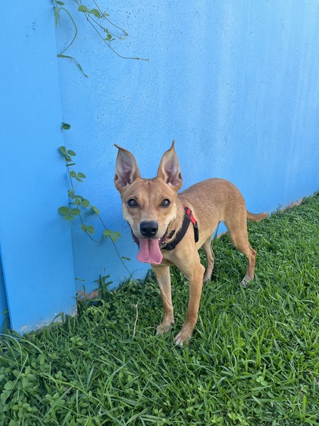 An active, busy girl, Chevy will thrive with daily play once comfortable. New toys can be scary at first, so sessions should always stay positive. She can become easily aroused, so ongoing basic training, impulse control, and "four paws on the floor" work will help her succeed.
