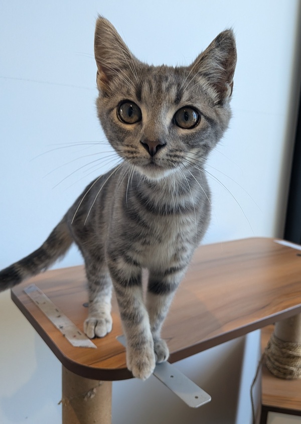 He's playful without being over the top, affectionate without being clingy, and brave enough to take life's surprises in stride. No matter your lifestyle, Tinsel is the kind of kitten who makes everything better-he's the perfect mix of fun and chill.